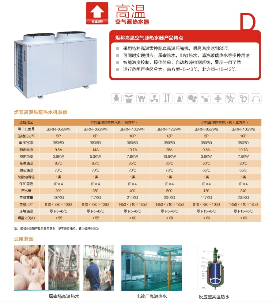 | 注:本技术参数是在工况:室外干球温度20℃,湿球温度15℃,出水温度55℃的情况下测试的,任何产品都有不断改进提高的过程,如有技术参数更改,本公司保留有恕不另行通知的权利;实际使用过程中,应考虑机组安装后系统管道、水泵、阀门及污垢等损失约6%左右的热量;所购机组性能参数如与本表不符,以所购机组铭牌为准。 | |