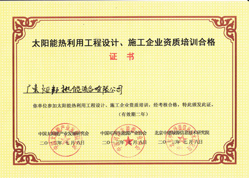太阳能热利用工程设计、施工企业资质培训合格证书