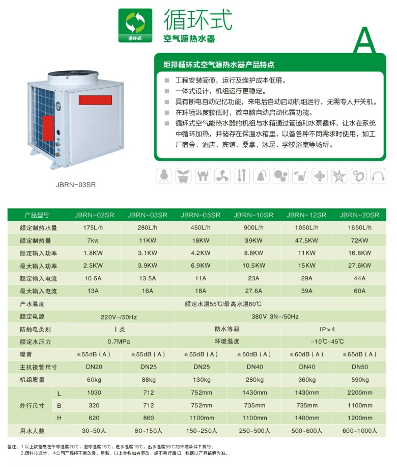 * 表示必填采购:循环式空气能热水器JBRN-03SR